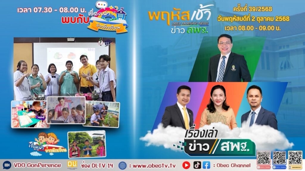 วันที่ 2 ตุลาคม 2568 เวลา 08.00 น. ดร.กัมพล เจริญรักษ์ ผอ.สพป.มหาสารคาม เขต 1 นำคณะผู้บริหาร รับชมรายการ “พฤหัสเช้าข่าว สพฐ.” ครั้งที่ 39/2568 เพื่อรับทราบข่าวสารข้อราชการ และนโยบาย การจัดการศึกษาจาก สพฐ. ผ่านระบบ Video Conference ณ ห้องประชุมสร้อยดอกหมาก สพป.มหาสารคาม เขต 1