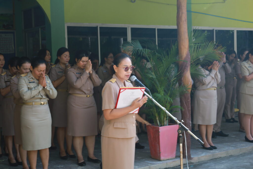 วันที่ 6 ตุลาคม 2568 เวลา 08.00 น. ดร.กัมพล เจริญรักษ์ ผอ.สพป.มหาสารคาม เขต 1 นำข้าราชการครูและบุคลากรทางการศึกษาในสังกัด เคารพธงชาติ สวดมนต์ไหว้พระ และกล่าวคำปฏิญญา “เขตสุจริต” ตามโครงการเสริมสร้างคุณธรรมจริยธรรม และธรรมาภิบาลสำนักงานเขตพื้นที่การศึกษา เพื่อร่วมส่งเสริมการป้องกัน และต่อต้านการทุจริต มิให้มีการทุจริตเกิดขึ้นในสังคม ร่วมสร้างสังคมไทยที่ไม่ทนต่อการทุจริต โดยมี นายภราดร เสนารัตน์, นายสุพิชญ์ พรอยู่ศรี และนายขวัญชัย มะธุเสน รอง ผอ.สพป. ร่วมเคารพธงชาติ สวดมนต์ไหว้พระ และกล่าวคำปฏิญาณ “เขตสุจริต” ณ บริเวณหน้าอาคาร สพป.มหาสารคาม เขต 1