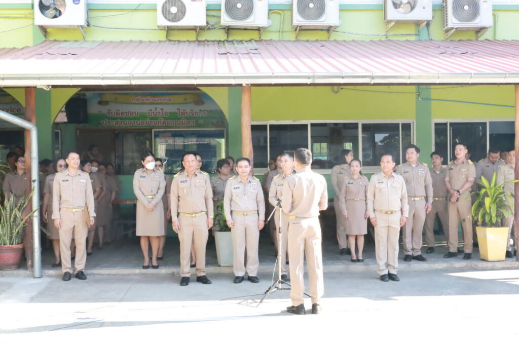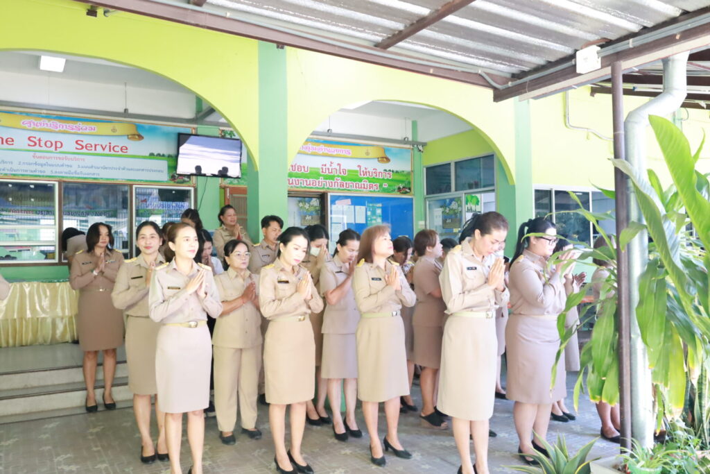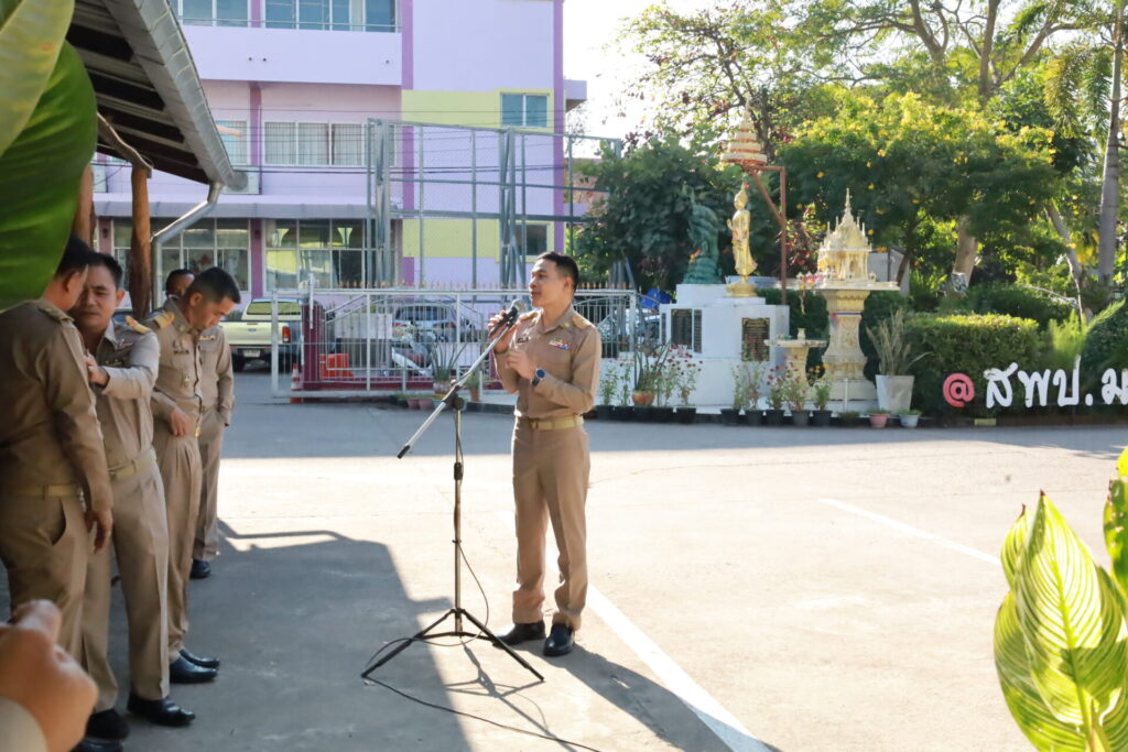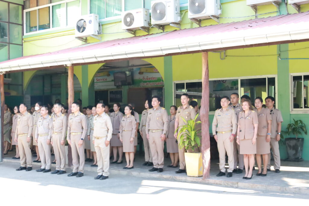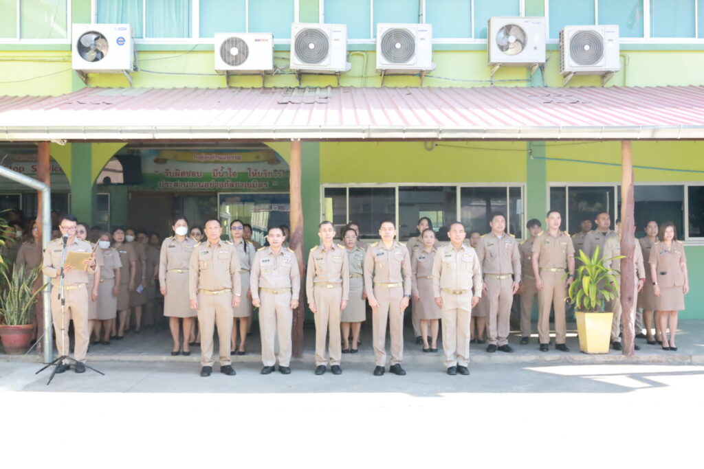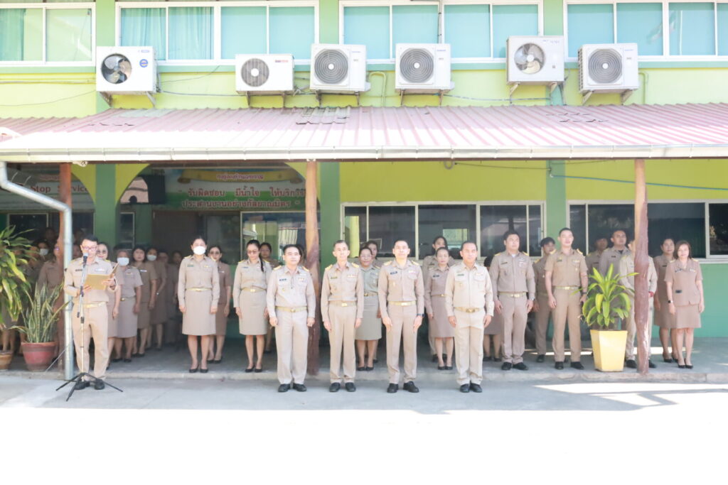 เคารพธงชาติ สวดมนต์ไหว้พระ และกล่าวคำปฏิญญา "เขตสุจริต" ณ บริเวณหน้าอาคาร สพป.มหาสารคาม เขต 1
