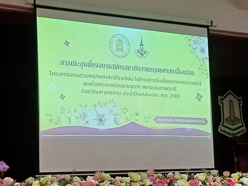 วันที่ 20 กุมภาพันธ์ 2569 ดร.กัมพล เจริญรักษ์ ผอ.สพป.มหาสารคาม เขต 1 มอบหมาย นางสาวศิริพร ภูมิพันธุ์ ศึกษานิเทศก์ ร่วมการประชุมชี้แจงโครงการงานสวนพฤกษศาสตร์โรงเรียน ในโครงการอันเนื่องมาจากพระราชดำริสมเด็จพระเทพรัตนราชสุดาฯ สยามบรมราชกุมารี จังหวัดมหาสารคาม ประจำปีงบบระมาณ พ.ศ. 2569 สำนักงานศึกษาธิการจังหวัดมหาสารคาม ณ ห้องประชุมเจริญศักดิ์ขจร โรงเรียนหลักเมืองมหาสารคาม อ.เมืองฯ จ.มหาสารคาม