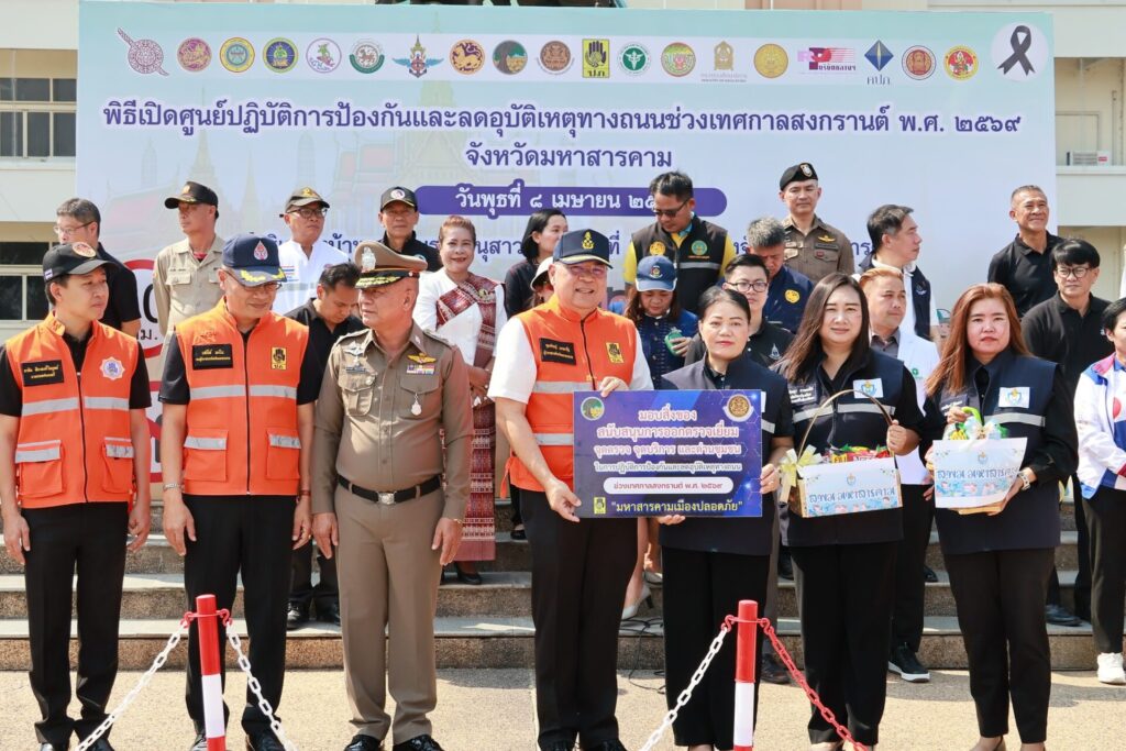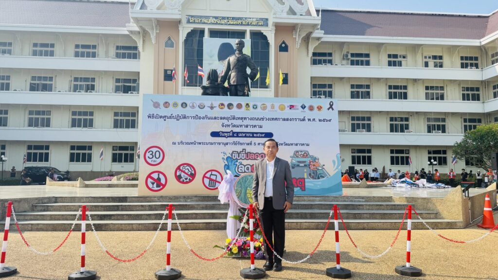 วันที่ 8 เมษายน 2569 เวลา 09.00 น. ดร.กัมพล เจริญรักษ์ ผอ.สพป.มหาสารคาม เขต 1 มอบหมาย นายยอดชาย ทึนหาร รอง ผอ.สพป. ร่วมพิธีเปิดศูนย์ปฏิบัติการป้องกันและลดอุบัติเหตุทางถนนช่วงเทศกาลสงกรานต์ พ.ศ. 2569 จังหวัดมหาสารคาม เพื่อดำเนินการรณรงค์ป้องกันและลดอุบัติเหตุทางถนนในช่วงเทศกาลสงกรานต์ ณ บริเวณหน้าพระบรมราชานุสาวรีย์รัชกาลที่ 5 ศาลากลางจังหวัดมหาสารคาม