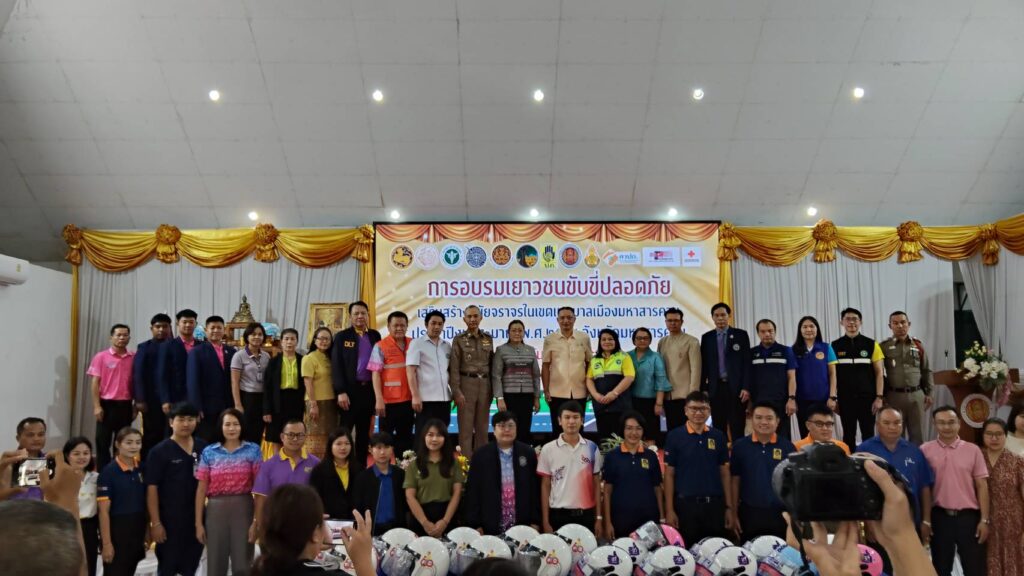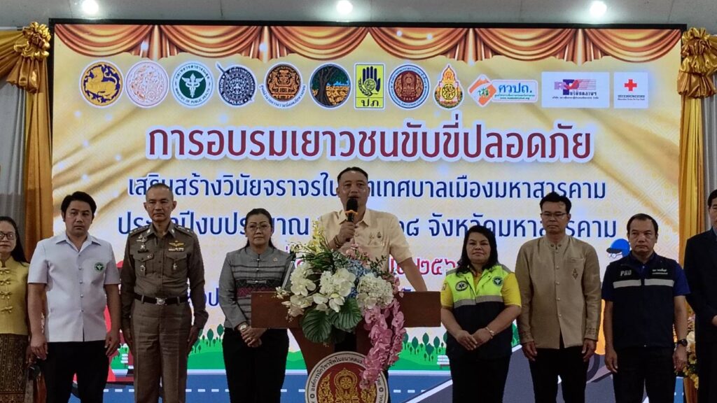 วันที่ 18 กันยายน 2568 เวลา 09.00 น. ดร.กัมพล เจริญรักษ์ ผอ.สพป.มหาสารคาม เขต 1 มอบหมายให้ นางปารณีย์ ศรีแก้ว ผู้อำนวยการกลุ่มส่งเสริมการจัดการศึกษา พร้อมด้วย ว่าที่ร้อยตรีปุญญวิชญ์ สุวรรณรัตน์ บุคลากรกลุ่มส่งเสริมการจัดการศึกษา เข้าร่วมเป็นเกียรติในพิธีเปิดการอบรมเยาวชนขับขี่ปลอดภัยเสริมสร้างวินัยจราจรในเขตเทศบาลเมืองมหาสารคาม ณ ห้องประชุมสุริยะจันทร์ วิทยาลัยเทคนิคมหาสารคาม จังหวัดมหาสารคาม มีวัตถุประสงค์เพื่อเสริมสร้างจิตสำนึกในด้านความปลอดภัยทางถนนและวินัยจราจร มีทักษะเอาชีวิตรอดบนท้องถนน เกิดความตระหนัก และเป็นตัวอย่างที่ดีในการปฏิบัติตามกฎหมายจราจร รวมถึงการสร้างเสริม ให้มีความรู้กฎหมายจราจรและสามารถนำไปใช้ในชีวิตประจำวัน และะสามารถเข้ามามีส่วนร่วมในการจัดการปัญหาความปลอดภัยทางถนในพื้นพื้นที่ ซึ่งเป็นประเด็นสำคัญที่ส่งผลกระทบโดยตรงต่อชีวิตและอนาคตของเยาวชนในจังหวัดมหาสารคาม โดยมีนายกนก ศรีวิชัยนันท์ รองผู้ว่าราชการจังหวัดมหาสารคาม เป็นประธานเปิดการอบรมฯ